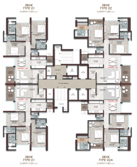 Carpet Area 1276 sqft. to 1500 sqft.